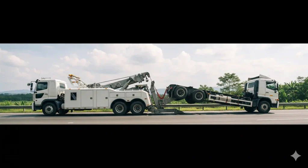 Layanan derek ini khusus untuk kendaraan komersial berukuran besar seperti truk, bus, atau kendaraan berat lainnya yang mengalami kerusakan atau kecelakaan. Prosesnya menggunakan truk derek besar dengan peralatan canggih untuk memastikan keamanan dan kekuatan saat menarik beban berat.